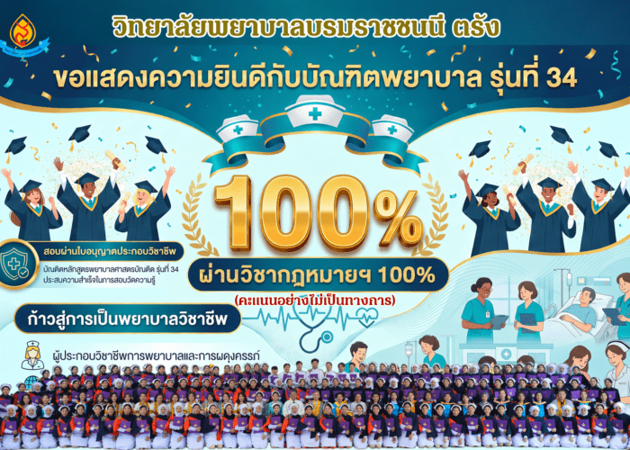 - วิทยาลัยพยาบาลบรมราชชนนี ตรัง คณะพยาบาลศาสตร์ สถาบันพระบรมราชชนก ขอแสดงความยินดีกับ บัญฑิตพยาบาล รุ่นที่ 34