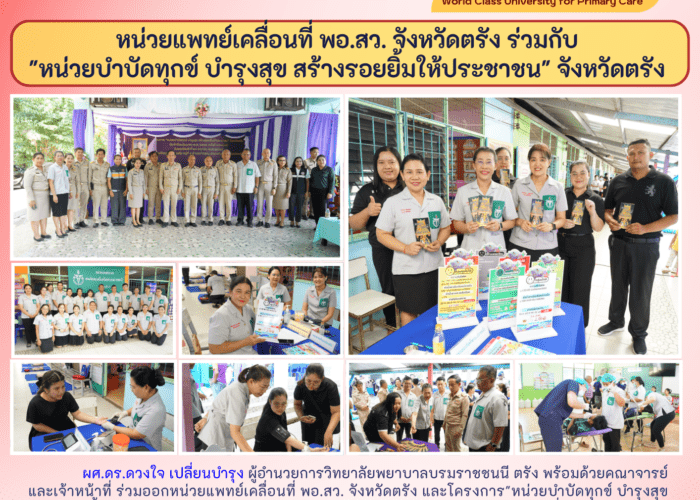 - หน่วยแพทย์เคลื่อนที่ พอ.สว. จังหวัดตรัง ร่วมกับ “หน่วยบำบัดทุกข์ บำรุงสุข สร้างรอยยิ้มให้ประชาชน” จังหวัดตรัง