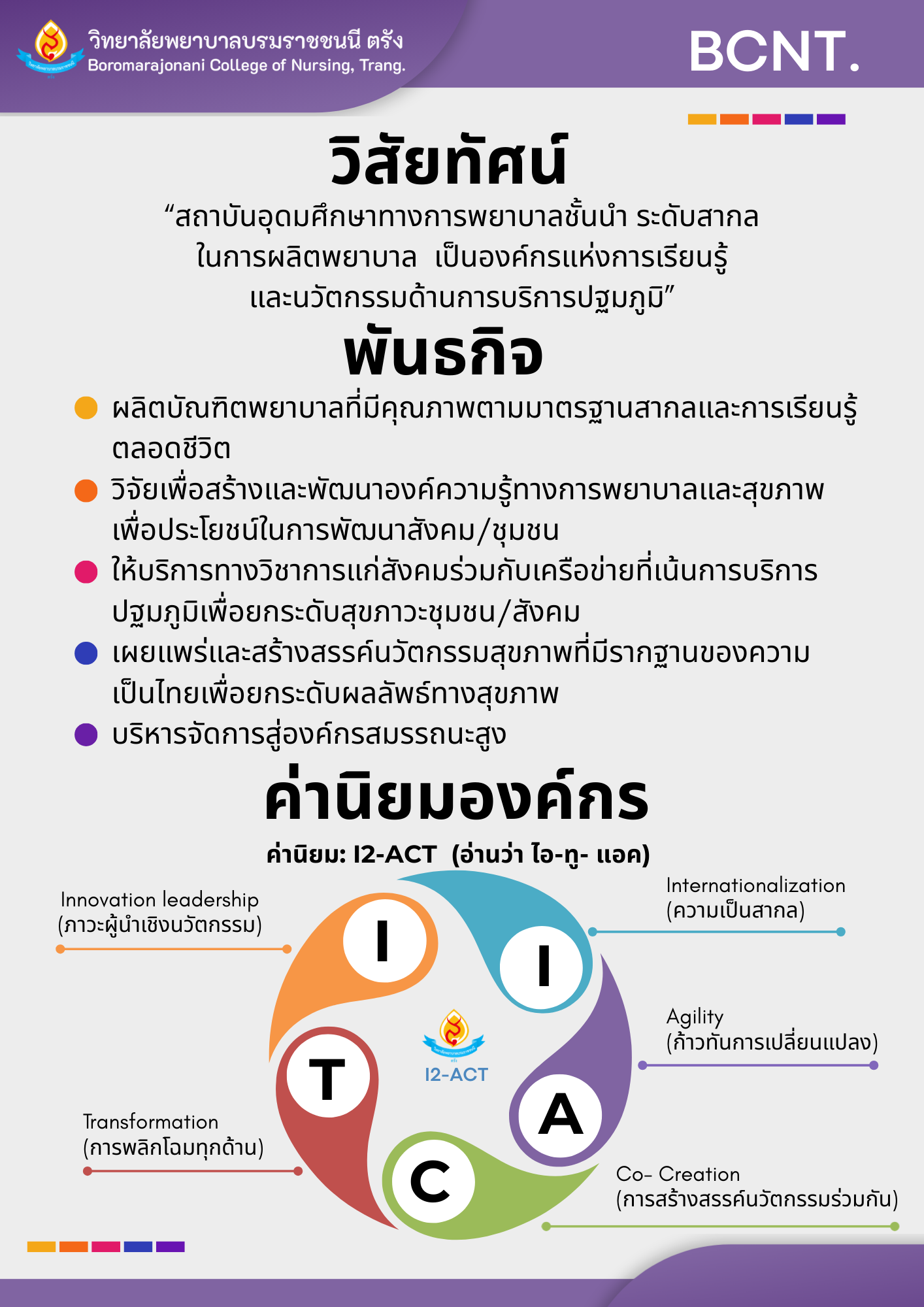 วิสัยทัศน์ พันธกิจ ค่านิยมองค์กร ของวิทยาลัยพยาบาลบรมราชชนนี ตรัง