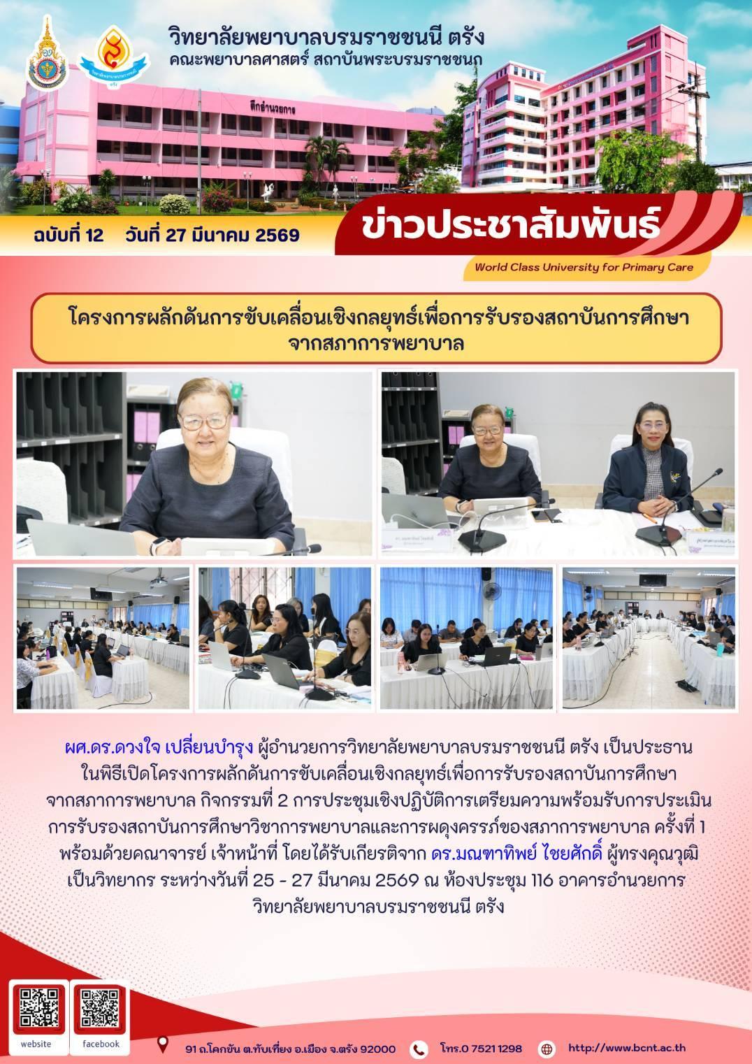 โครงการผลักดันการขับเคลื่อนเชิงกลยุทธ์เพื่อการรับรองสถาบันการศึกษาจากสภาการพยาบาล
