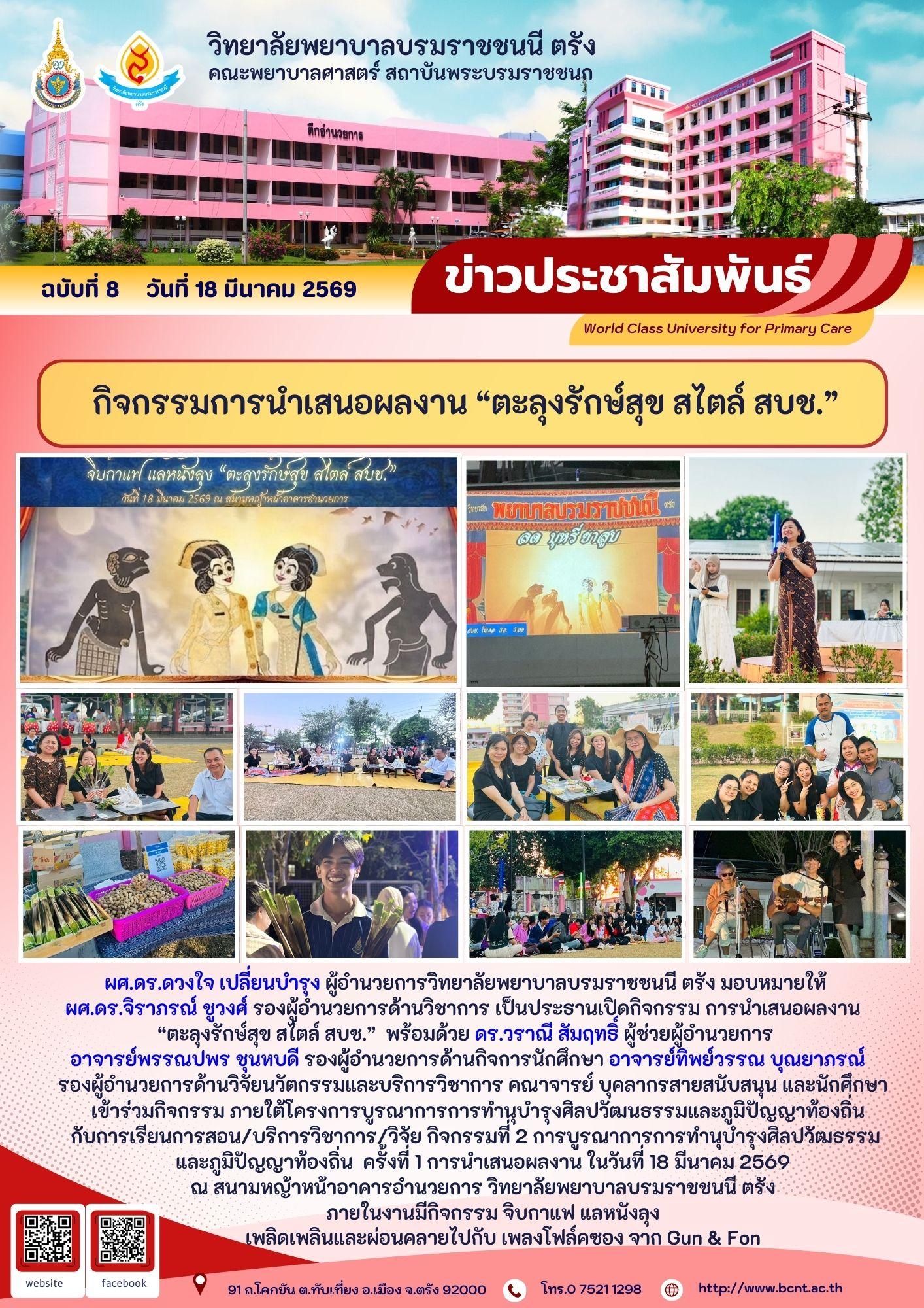 กิจกรรมการนำเสนอผลงาน “ตะลุงรักษ์สุข สไตล์ สบช.”
