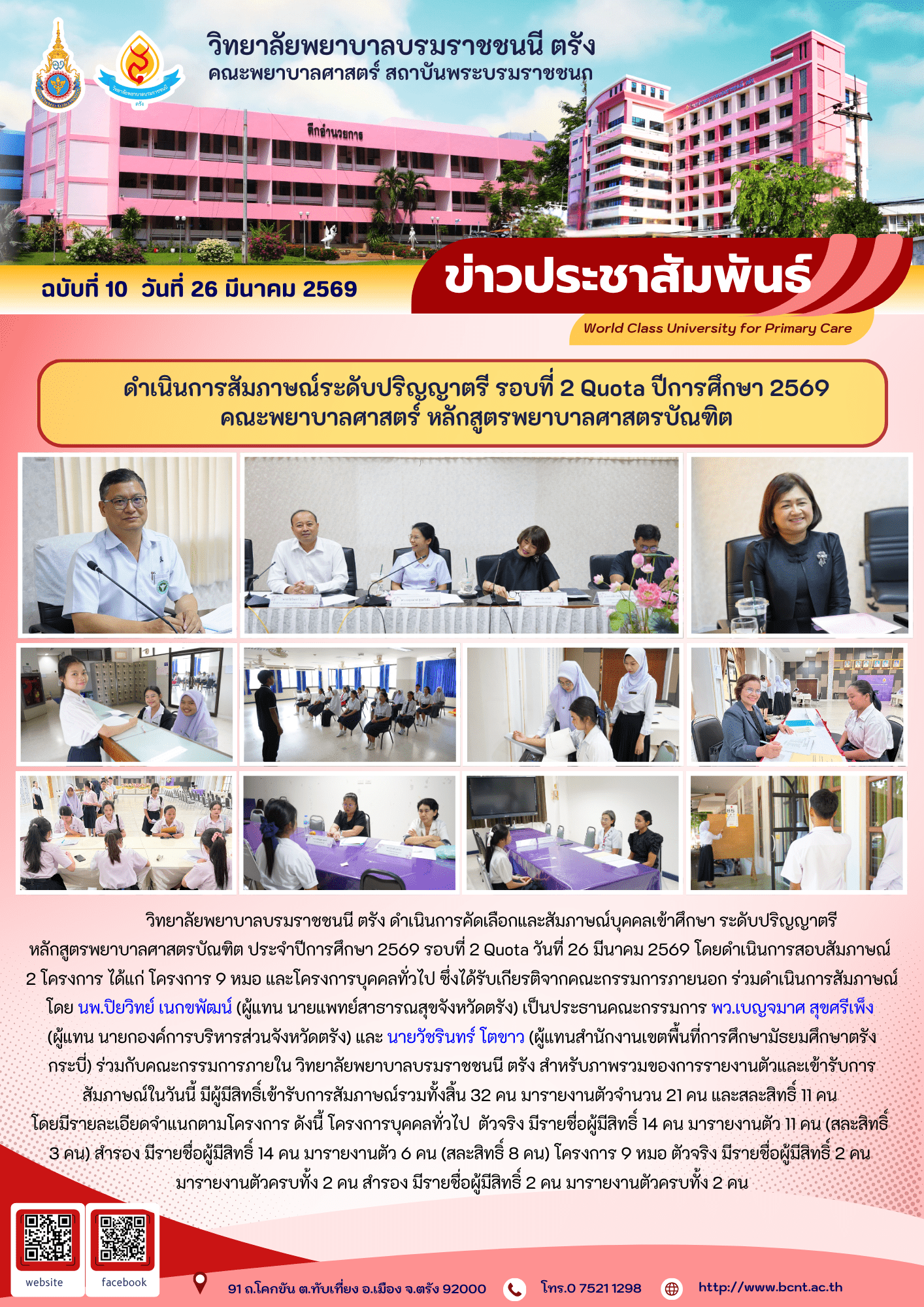 ดำเนินการสัมภาษณ์ระดับปริญญาตรี รอบที่ 2 Quota ปีการศึกษา 2569 คณะพยาบาลศาสตร์ หลักสูตรพยาบาลศาสตรบัณฑิต