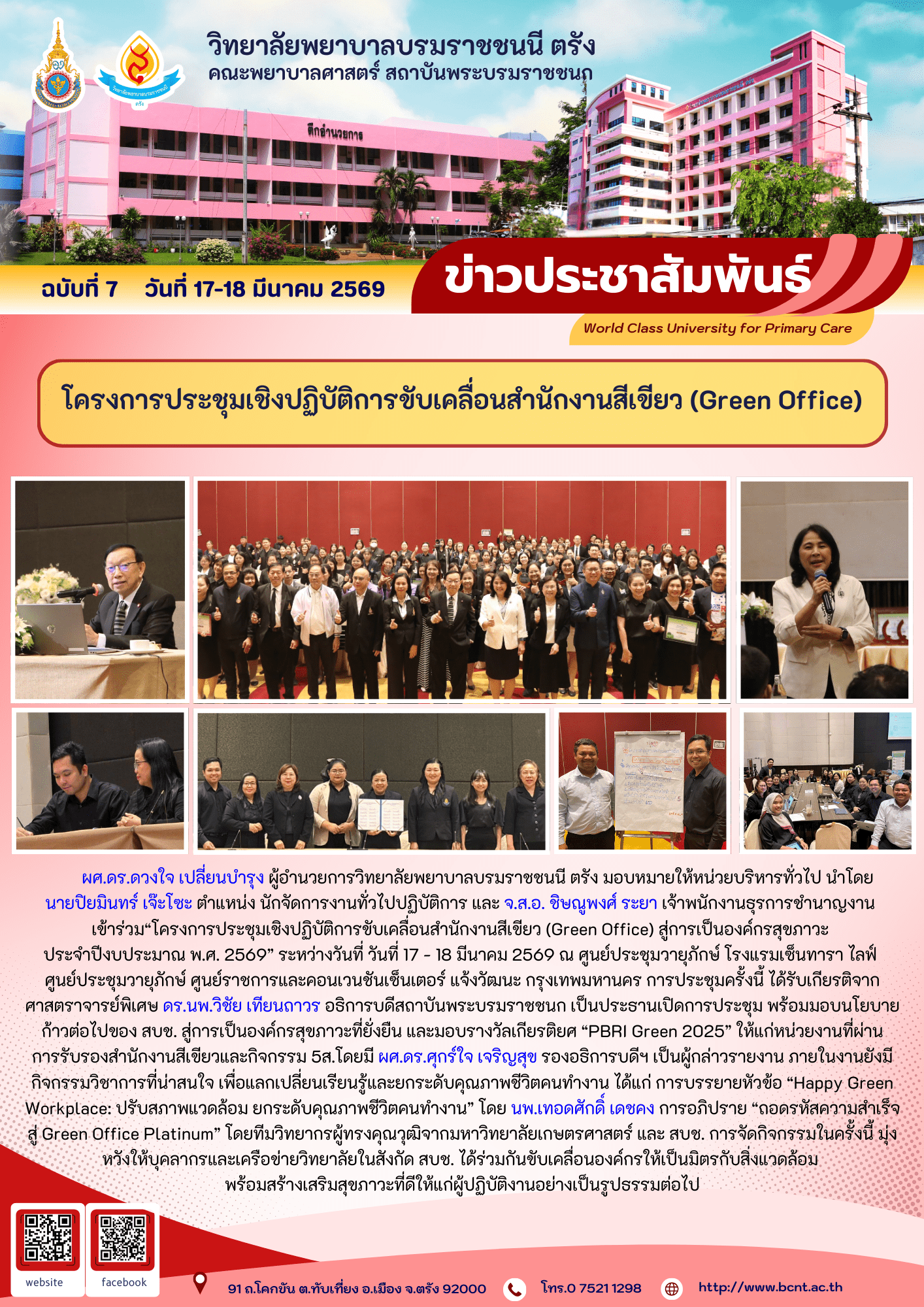 มาตรการประหยัดพลังงานและการปฏิบัติงานของบุคลากรในวิทยาลัยพยาบาลบรมราชชนนี ตรัง เพื่อผลกระทบจากสถานการณ์สู้รบในตะวันออกกลาง และการปฏิบัติตามกฎระเบียบด้านพลังงานและสิ่งแวดล้อม