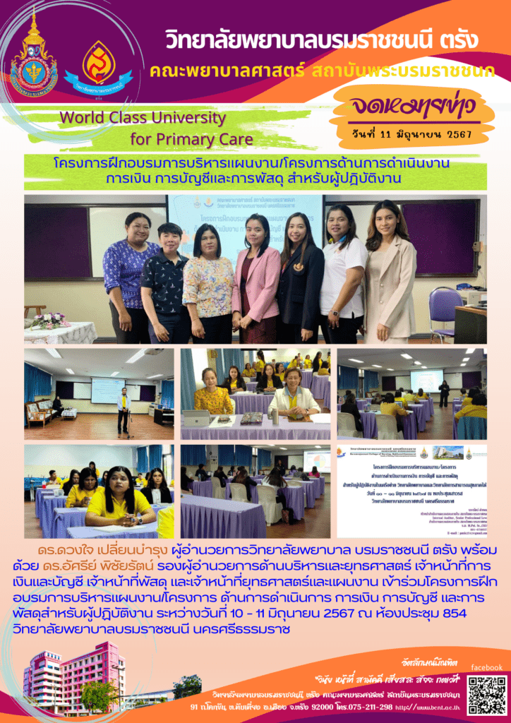 โครงการฝึกอบรมการบริหารแผนงาน/โครงการ ด้านการดำเนินการ การเงิน การบัญชี และการพัสดุสำหรับผู้ปฏิบัติงาน