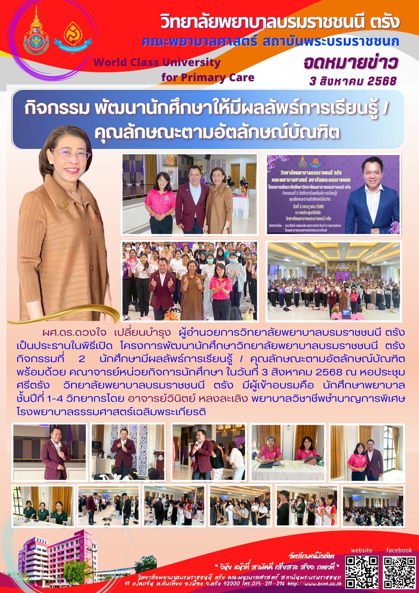 กิจกรรมพัฒนานักศึกษาให้มีผลลัพธ์การเรียนรู้/คุณลักษณะตามอัตลักษณ์บัณฑิต