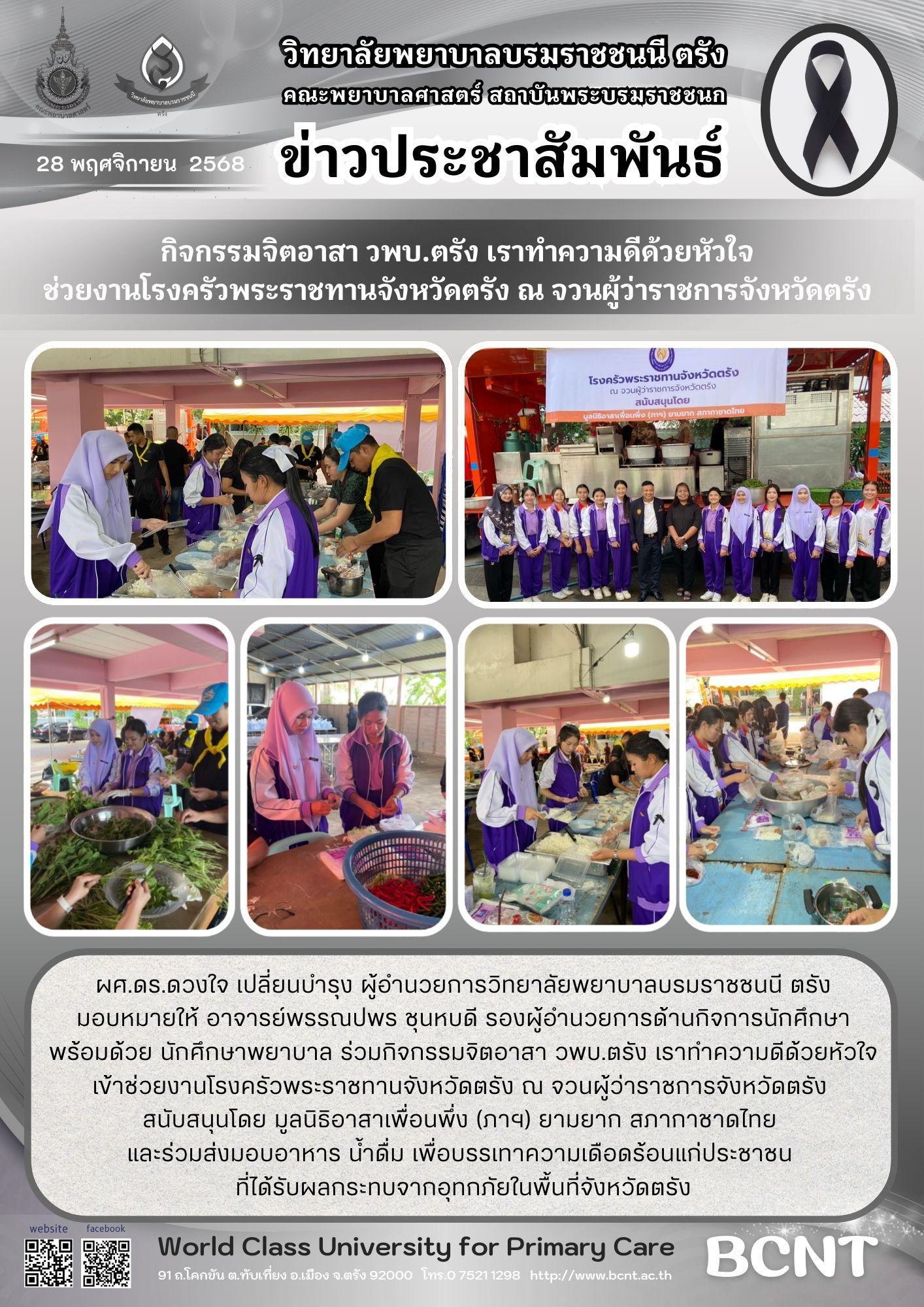 กิจกรรมจิตอาสา วพบ.ตรัง เราทำความดีด้วยหัวใจ ช่วยงานโรงครัวพระราชทานจังหวัดตรัง ณ จวนผู้ว่าราชการจังหวัดตรัง