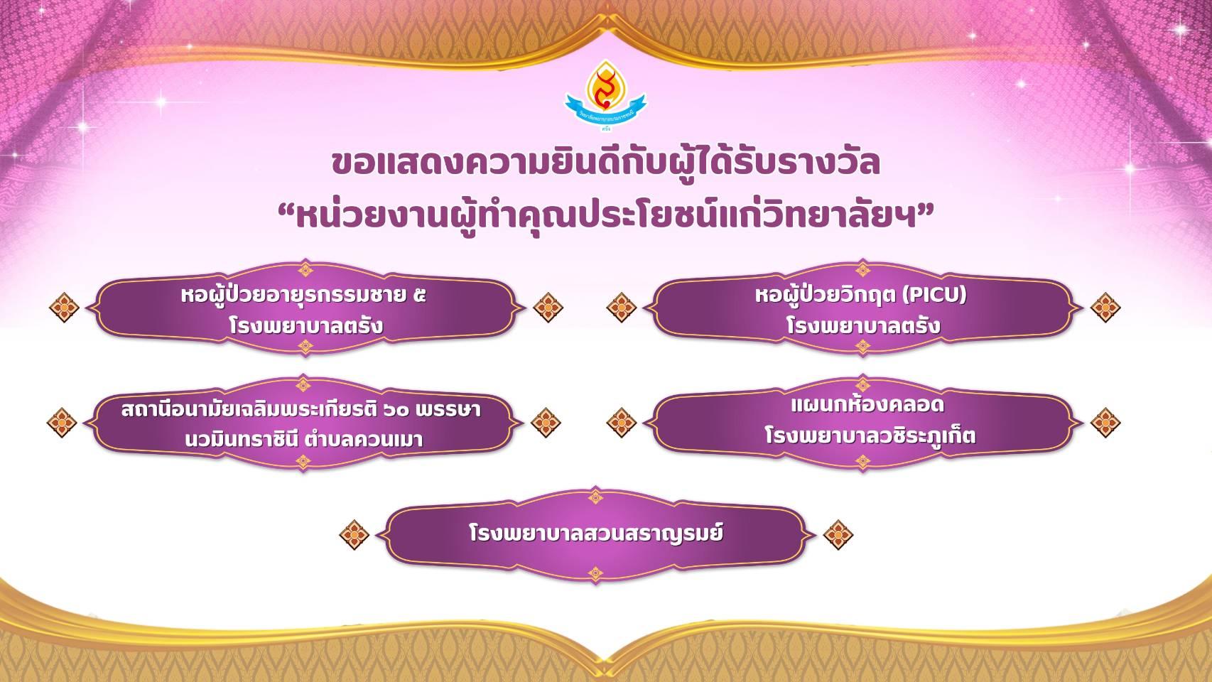 ขอแสดงความยินดีกับหน่วยงานผู้ทำคุณประโยชน์แก่วิทยาลัยฯ ประจำปี 2568