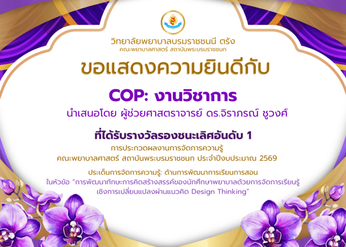 - ขอแสดงความยินดีกับ อาจารย์เพ็ญนภา เพ็ชรเล็ก ในโอกาสที่ได้รับการจดอนุสิทธิบัตร ผลงานการประดิษฐ์ เรื่อง : ไม้เท้า (WALKING STICK THERAPY) ออกให้ ณ วันที่ 24 มีนาคม 2569