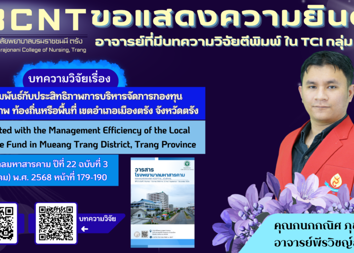- ขอแสดงความยินดีกับ อาจารย์พีรวิชญ์ สุวรรณเวลา ที่ได้รับการตีพิมพ์บทความวิจัยและบทความวิชาการในวารสารโรงพยาบาลมหาสารคาม ปีที่ 22 ฉบับที่ 3 (กันยายน –ธันวาคม) พ.ศ. 2568