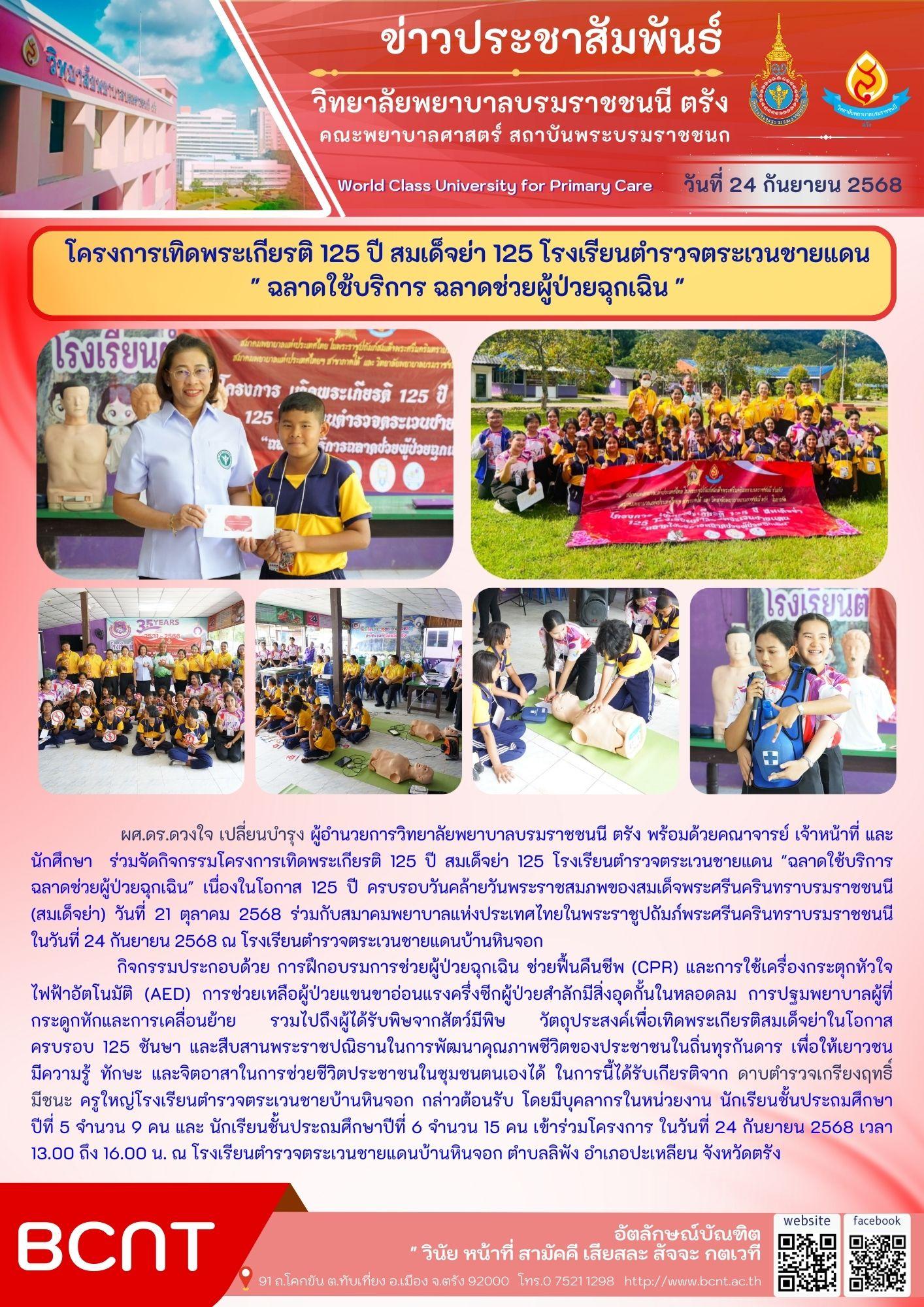 โครงการเทิดพระเกียรติ 125 ปี สมเด็จย่า 125 โรงเรียนตำรวจตระเวนชายแดน “ฉลาดใช้บริการ ฉลาดช่วยผู้ป่วยฉุกเฉิน”