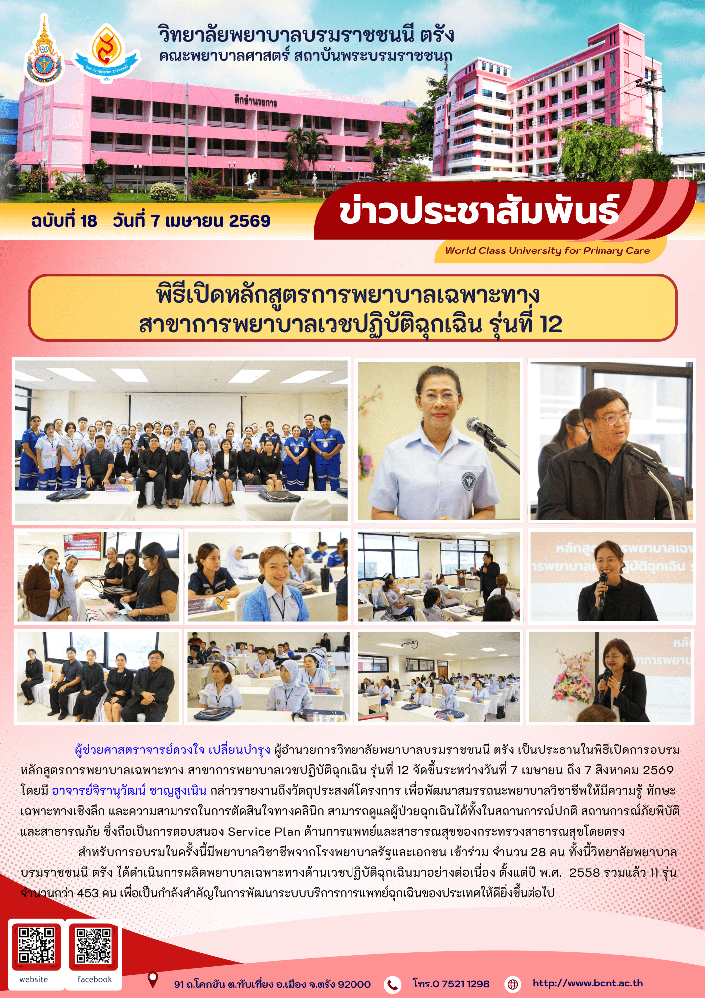 พิธีเปิดหลักสูตรการพยาบาลเฉพาะทาง สาขาการพยาบาลเวชปฏิบัติฉุกเฉิน รุ่นที่ 12