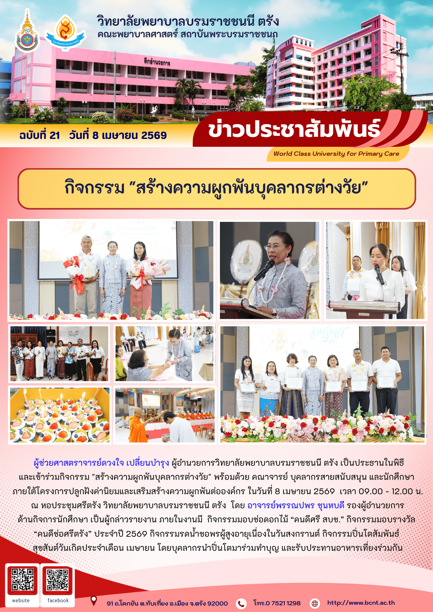 • Previous ขอแสดงความยินดีกับ ผู้ที่ได้รับรางวัล “คนดีช่อศรีตรัง” ประจำปีงบประมาณ พ.ศ. 2569