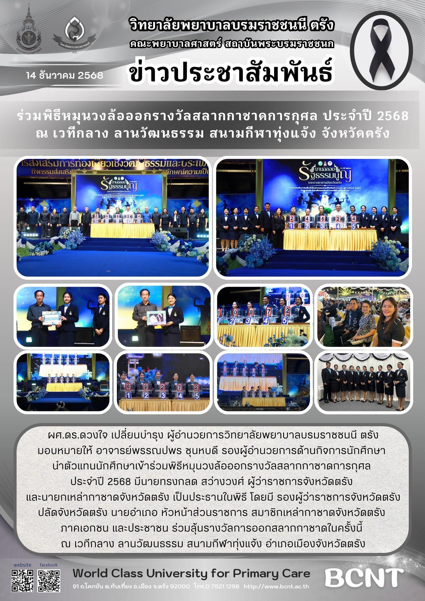 ร่วมพิธีหมุนวงล้อออกรางวัลสลากกาชาดการกุศล ประจำปี 2568 ณ เวทีกลาง ลานวัฒนธรรม สนามกีฬาทุ่งแจ้ง จังหวัดตรัง