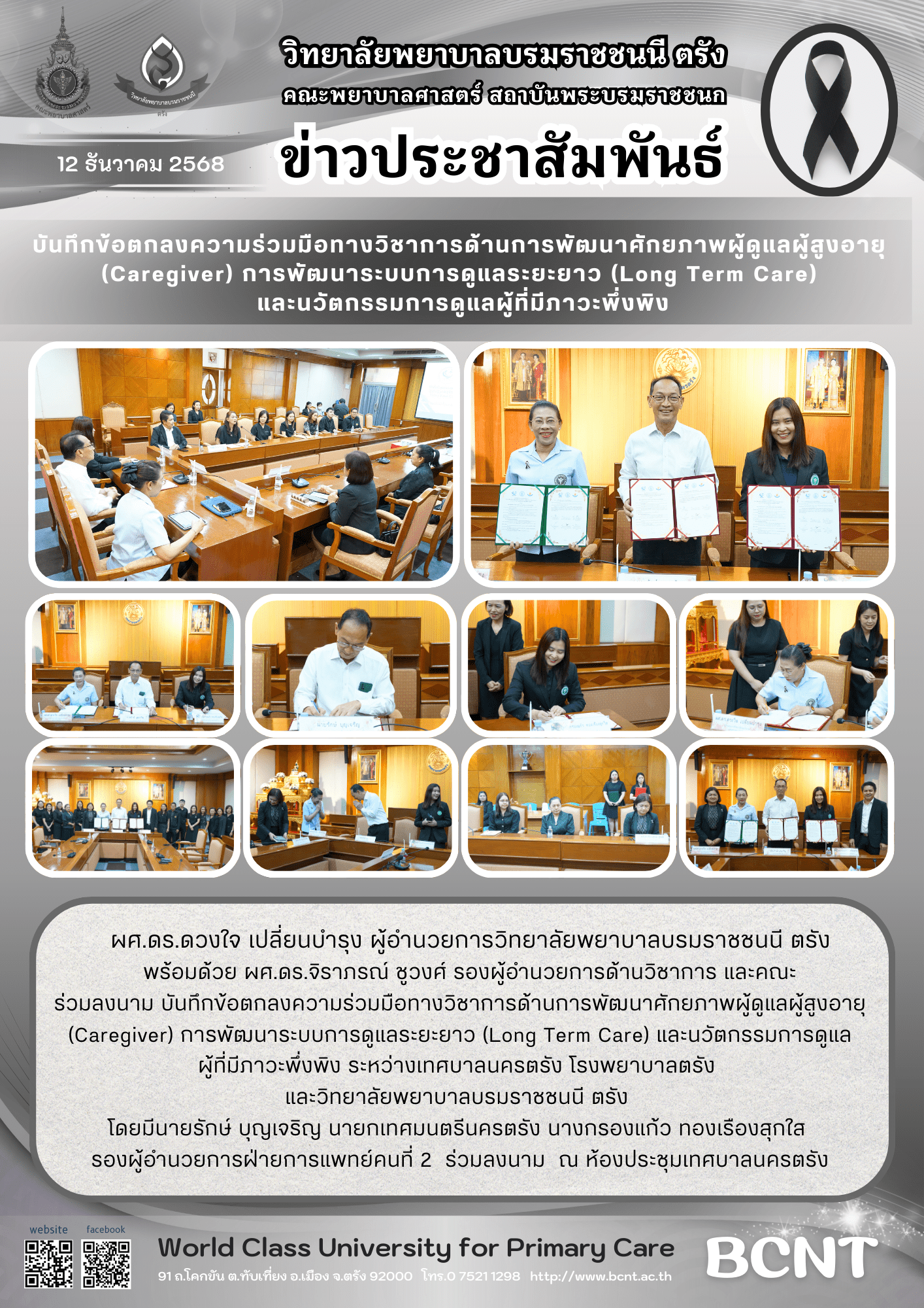 บันทึกข้อตกลงความร่วมมือทางวิชาการด้านการพัฒนาศักยภาพผู้ดูแลผู้สูงอายุ(Caregiver) การพัฒนาระบบการดูแลระยะยาว (Long Term Care)และนวัตกรรมการดูแลผู้ที่มีภาวะพึ่งพิง