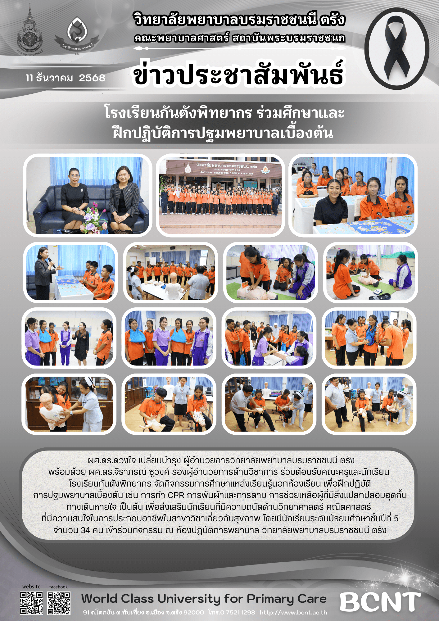 โรงเรียนกันตังพิทยากร ร่วมศึกษาและฝึกปฏิบัติการปฐมพยาบาลเบื้องต้น