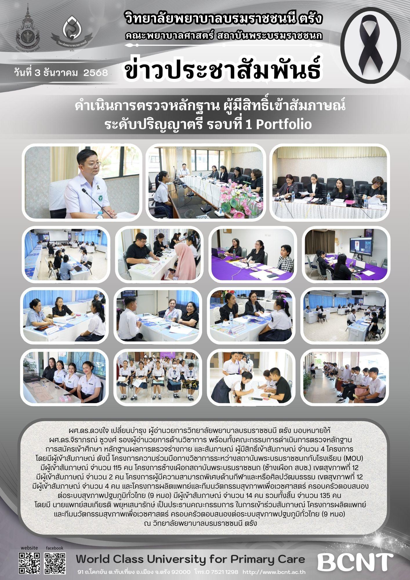 ดำเนินการตรวจหลักฐาน ผู้มีสิทธิ์เข้าสัมภาษณ์ ระดับปริญญาตรี รอบที่ 1 Portfolio